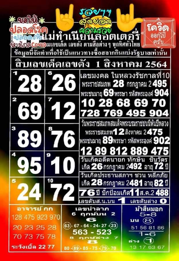 หวยแม่ทำเนียน 1/8/64 เผย 10 เลขดัง;
